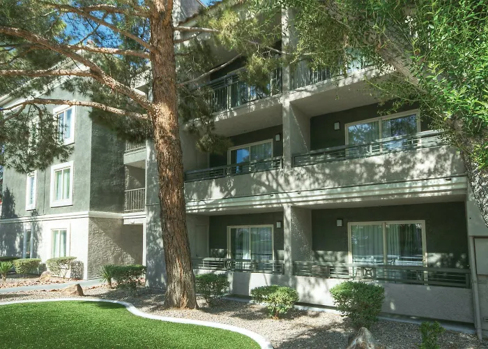 Located near the West of the Las Vegas Strip district, the inn is a 10-minute ride from the shopping mall "Shops At Crystals". The nearby sports attractions include the 20000-seat T-Mobile Arena, not very far from the comfortable hotel.