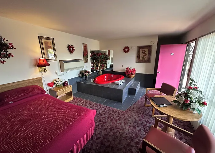 There are 45 spacious rooms at the property, some of them have a stone fireplace, and modern facilities such as free Wi-Fi and a cable flat-screen TV. They are furnished with queen size beds along with a sofa. Featuring a hot tub and a shower, the private bathrooms are also fitted with hair dryers and towels. Guests can enjoy views of the garden from this Wisconsin Dells hotel.