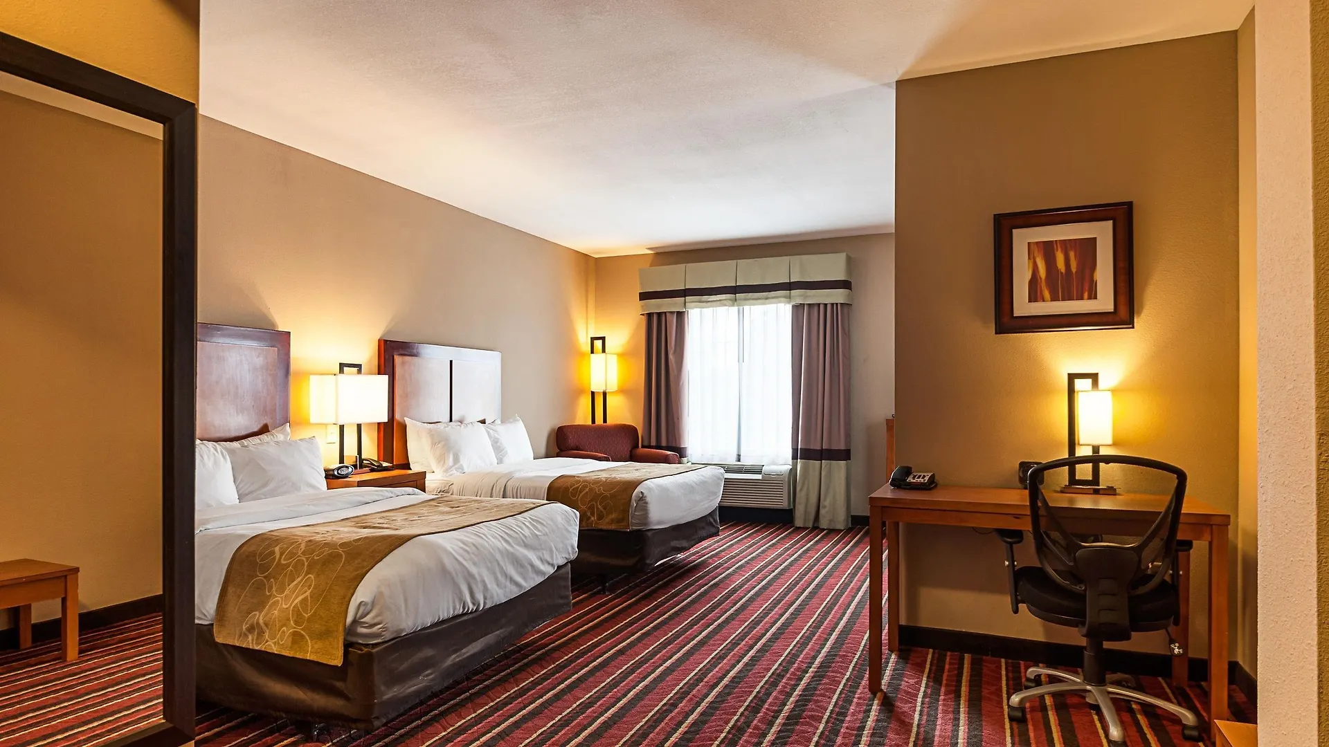 There are 80 rooms with an iron with ironing board and climate control. Some of them offer complimentary wireless internet and a flat-screen television as well as a microwave. Also, you will find tea and coffee making equipment, and a fridge provided. Guests can enjoy views of the city from Comfort Suites Sulphur-Lake Charles hotel.