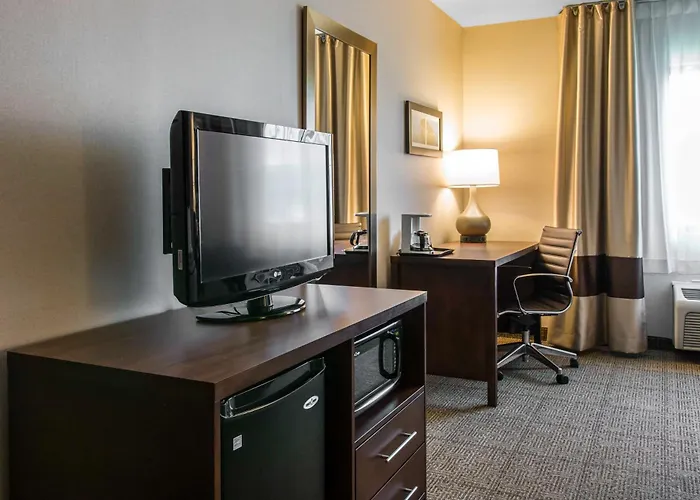 The perfect 2-star Comfort Inn Ludington Near Us-10, located around a 10-minute ride from Big Sable Point Lighthouse, boasts a heated pool and a gym.
