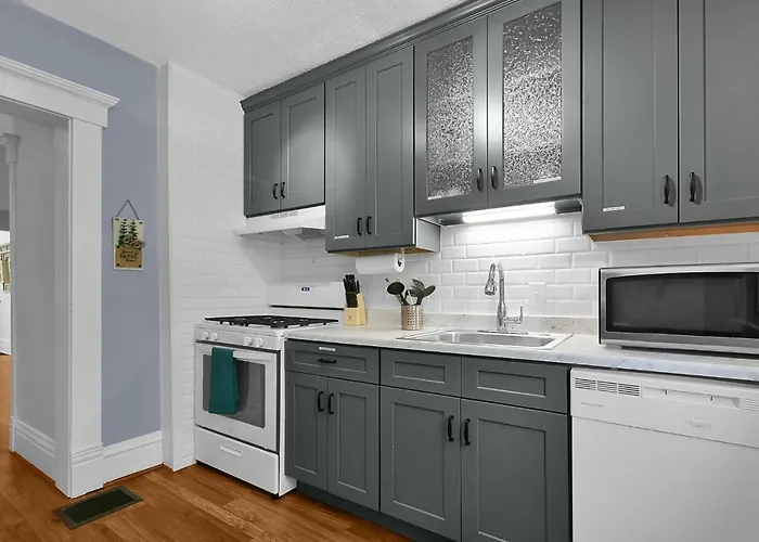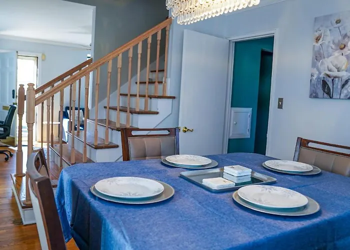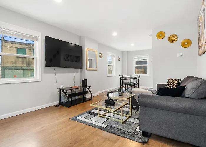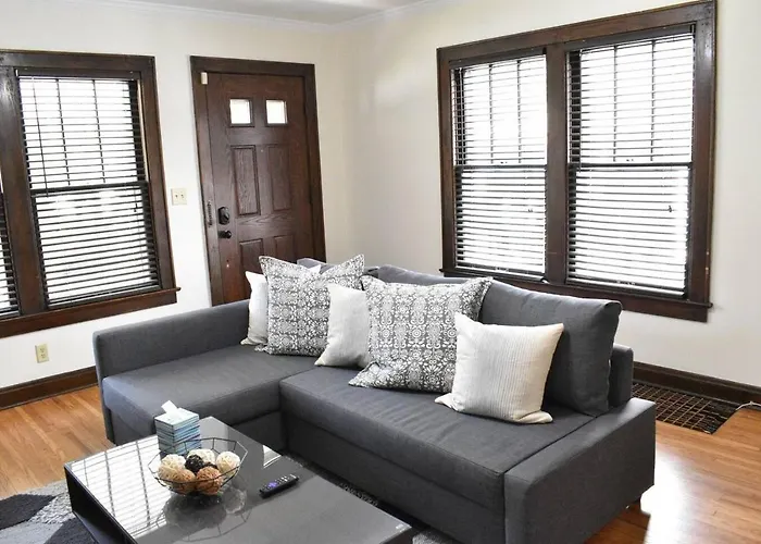 Featuring a sofa set, Modern Columbus Home is equipped with a television, ironing facilities, and conveniences like an air conditioner. Smoke detectors are part of the in-room safety amenities. Beds fitted with feather down pillows are at guests' disposal. For your comfort, you will find a separate toilet and a shower at this apartment. Furthermore, a dryer, free toiletries, and bath sheets is available.