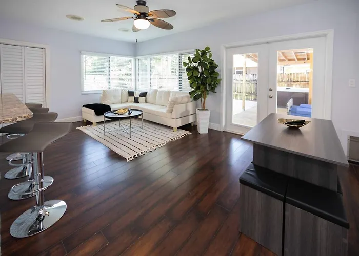 Featuring Wi-Fi throughout the property, Tropical Spa Escape Sauna Pool Hot Tub Firepit Bbq Boynton Beach hotel is about a 25-minute walk from Boggy Creek Golf Club. The 4-star hotel is 4.3 km from Mangrove Nature Park and provides guests with a Jacuzzi and a sauna.