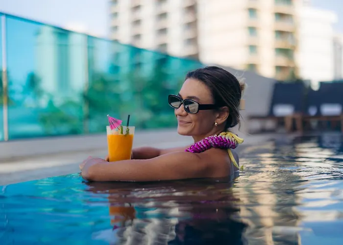 Offering a restaurant and baggage storage, the comfortable Waikiki Malia Hotel Honolulu lies in Waikiki, known for its popular surf beach, 5 minutes' drive from the 42 - acre Honolulu Zoo and a mere 5 minutes' stroll from the public Waikiki Beach Walk. This 3-star hotel, located merely 1.7 km from Kalakaua Avenue, boasts an outdoor swimming pool along with a Jacuzzi and an outdoor swimming pool.