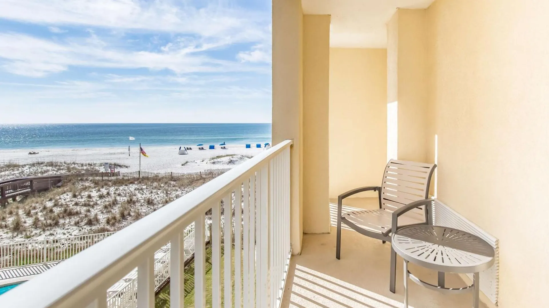 A prime setting offers easy access to the beautiful own beach. This accommodation is located in a touristic area of Gulf Shores.