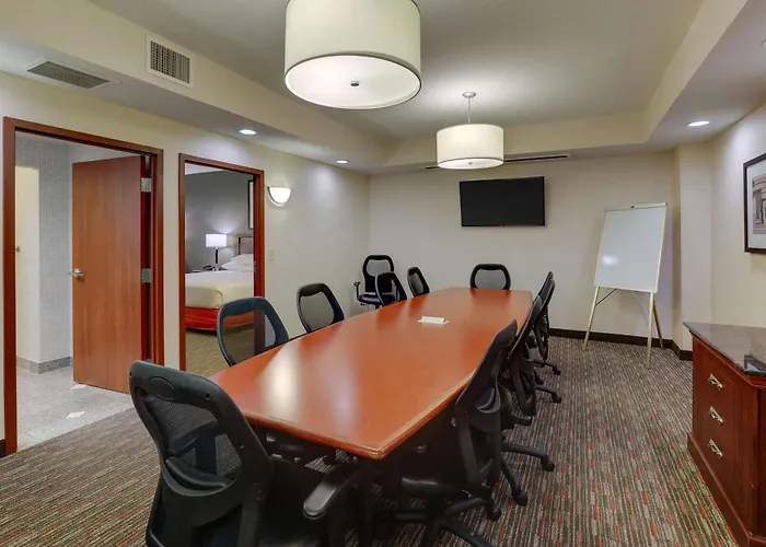 The Hilton Garden Inn offers a fitness room, spa therapy, various recreational opportunities, and barbecue grills to diversify your leisure. The presence of a golf course ensures guests an active stay at this property. Other on-site facilities include a 24/7 business centre along with a desk and a xerox.