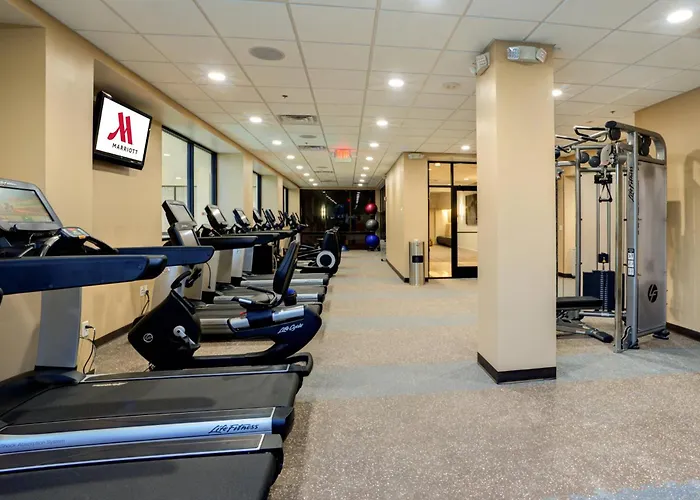 The upscale Marriott North offers a gym as well as a spa salon for guests to enjoy their stay. There is a meeting room and a conference space available for corporate travellers.