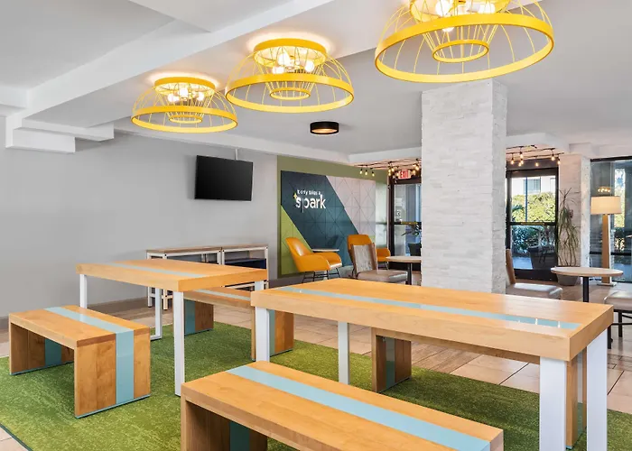 The smoke-free accommodation puts you right in the centre of Hilton Head Island, a 20-minute stroll from Coligny Plaza Shopping Center. Situated a mere 1.6 km from Coligny Circle, the welcoming Spark is also a 15-minute drive from Baynard Plantation Ruins. Nature lovers will appreciate the proximity to Lake Mary, which is approximately 20 minutes away by car. Relax, both physically and mentally, at The Art of Massage and Yoga Therapy Day Spa, located about a 25-minute walk from Spark By Hilton Hilton Head Island Hotel. For those travelling from afar, Hilton Head airport is 16 minutes' drive away.