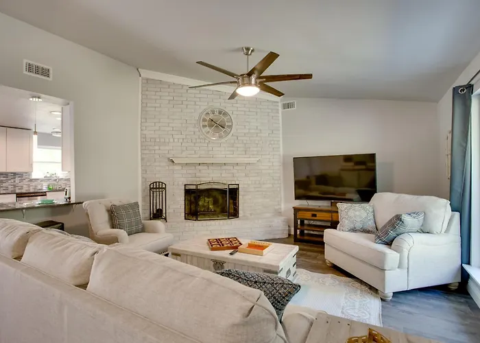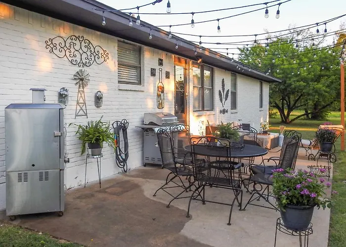 The 2-bedroom Woodhaven Cottage Downtown Mckinney offers proximity to such city sites as Dr. Glenn Mitchell Memorial Park, located just a 6-minute walk away. Providing guests with Wi-Fi and a private parking lot, this McKinney holiday home is merely 0.7 km from Chesnut Community Church.