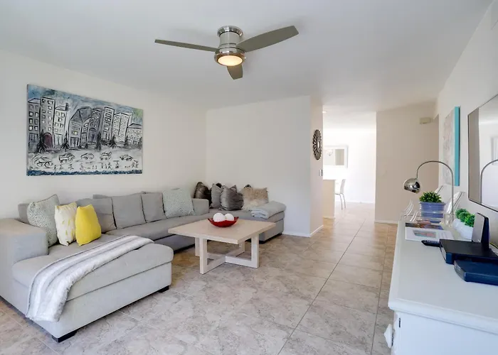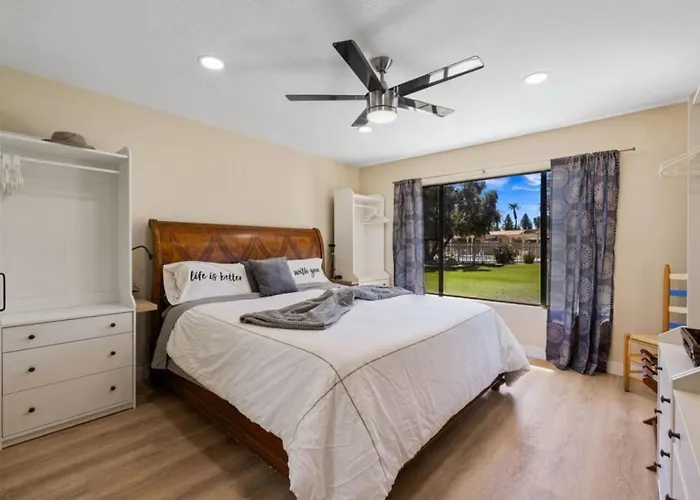 The 87 m² Casa Amiga - Gated Community, Pool, Golf Apartment Palm Desert is located in Palm Desert, 4 km from Indian Wells Tennis Garden, and boasts a hot tub. For guests seeking an active stay, this 3-bedroom apartment grants access to a golf club and a golf course.