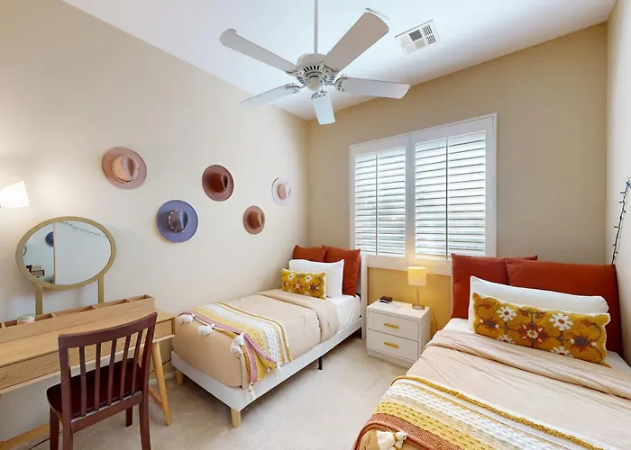 Palm Springs Air Museum is 2.7 km from the 2-bedroom holiday home, while Palm Springs Convention Center is a mere 1.8 km away. Also, guests can visit Robolights, nestled 9 minutes' walk away. Tahquitz Canyon at Hermosa bus station is in proximity to the 2-bathroom villa.