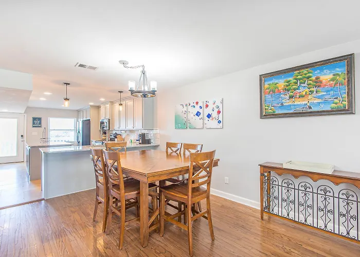 The 4-bedroom Blue Dolphin Hideaway Villa Pensacola Beach is located 3.1 km from Quietwater Beach Boardwalk Shopping Mall and provides a year-round outdoor swimming pool, ensuring a relaxing stay. Guests can enjoy windsurfing, snorkelling, and bowling at the holiday home, located around 10 minutes' drive from Casino Beach.