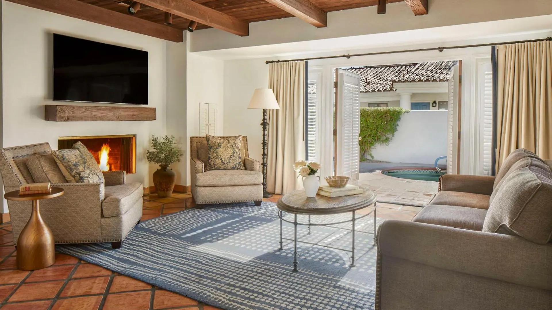 The majority of the rooms overlook Santa Rosa Mountains. They are decorated with elegant furniture.