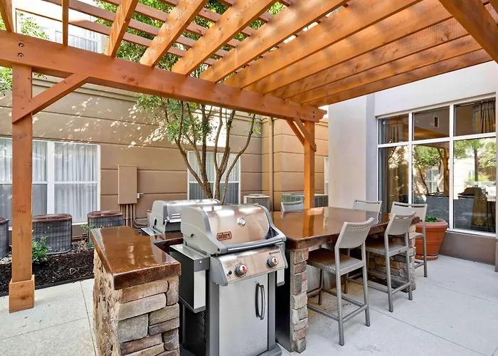 The Embassy Suites San Antonio Northwest I-10 has a hot tub, barbeque grills and a separate sitting area as well as a hot tub and an indoor pool. Guests can work out in a gym facility.