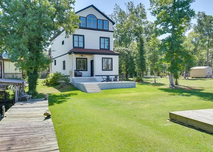 Chic New Magnolia Springs Home With Dock, Beach is a beachfront property placed at a 2.9 km distance from Weeks Bay Plantation. There is also a fully equipped kitchen with a fridge, an oven and kitchenware and the rooms offer river views as well.