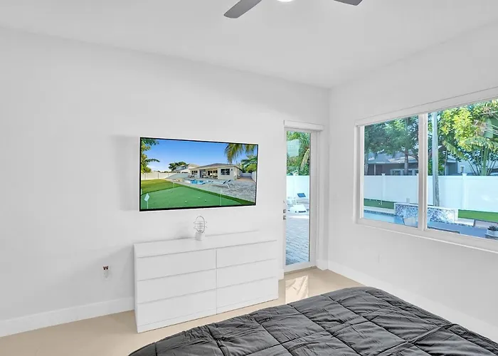 Featuring a private pool for guests' relaxation, the 3-bedroom 5 Mins To Beach Lux Spacious Heated Pool Home With 2 Car Garage Pompano Beach is located around a 10-minute ride from Pompano Beach. Featuring garden views, the Pompano Beach villa invites guests to visit Dan Witt Park, located 3.2 km away.
