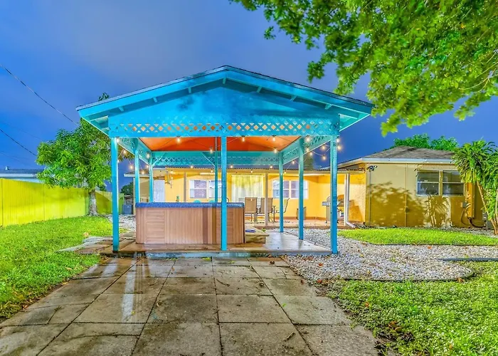 Offering a hot tub for a relaxing experience, Beach 2Br Villa Sleeps 4 Trendy & Luxe Pompano Beach is located around a 25-minute walk from the Isle Casino Racing Pompano Park. Located 3.7 km from Fern Forest Nature Center, the villa boasts a terrace with views of the garden.