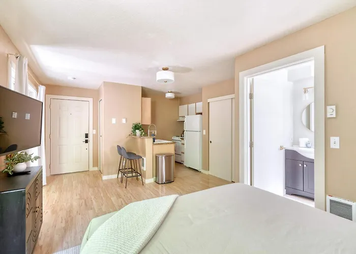 Landing At Bridgetown Lofts - 1 Bedroom In Northwest Portland is a spacious apartment in Northwest district of Portland. This spacious accommodation has a fully furnished kitchen with a microwave and a fridge.