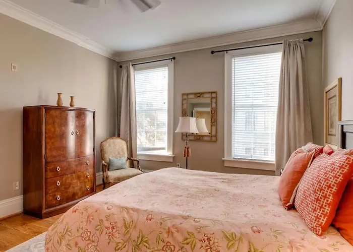 The 145 m² 4 Bedroom Beauty Steps From The River apartment is located in the very heart of Savannah, nearly an 11-minute walk from the 19th-century Roman Catholic church "Cathedral of St John the Baptist". Featuring a sunny patio with views of the city, this 4-bedroom apartment is placed in a short walking distance from the historic plaza "Johnson Square".