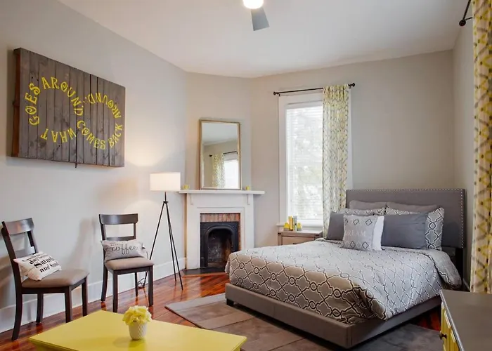 Nestled in Downtown Savannah with cobblestoned squares and parks such as Forsyth Park shaded by oak trees covered with Spanish moss, the 115 m² 414 Waldburg A - Newly Renovated Apt With Outdoor Space! apartment offers accommodation approximately an 18-minute walk from such cultural place of interest as Webb Military Museum. Boasting entertainment activities and barbeque grills, this 2-bedroom apartment, suitable for 5 guests, is set at a medium distance from Mercer Williams House Museum.