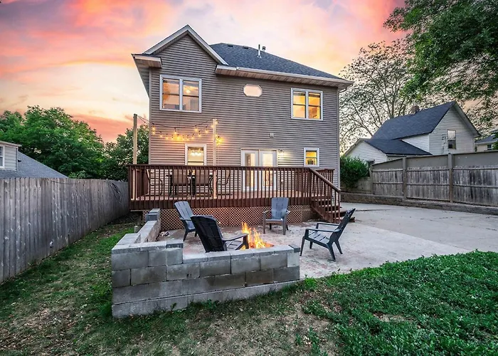 The 4-bedroom Sioux Falls Abode With Fire Pit - 1 Mi To Dtwn! offers accommodation in Sioux Falls, within 1 km of Downtown Sioux Falls and around 10 minutes by car from Denny Sanford Premier Center Arena. This Sioux Falls villa also features a fully equipped kitchen and amenities such as a microwave, a refrigerator, and kitchenware.