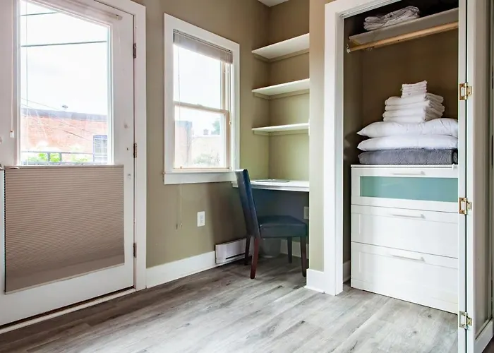 The 1-room Eastern Market Carriage House Efficiency Privacy apartment is nestled in the Southeast district of Washington, around a 5-minute drive from Supreme Court.
