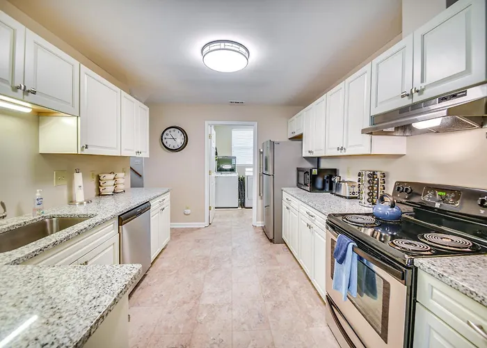 Williamsburg Condo Rental 3 Mi To Busch Gardens! venue is a spacious accommodation located 15 minutes' drive from Colonial Williamsburg Town. An equipped kitchen provides guests with a range of facilities such as a fridge, an oven, and kitchenware.
